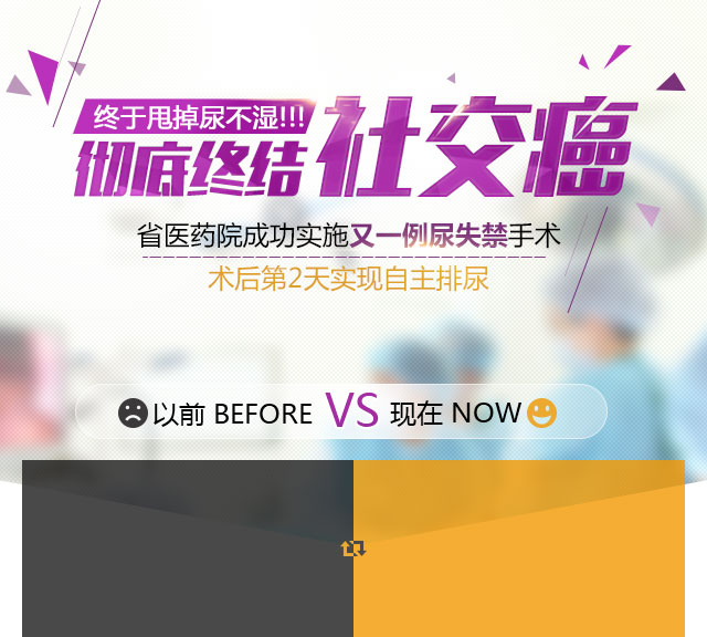女,40岁,近半年在大笑、咳嗽、喷嚏或行走等各种程序腹压时尿不由自主流出,导致工作辞了,生活也受到极大影响。这期间也去过几家医院看,但都没效果,各种难堪苦不堪言。